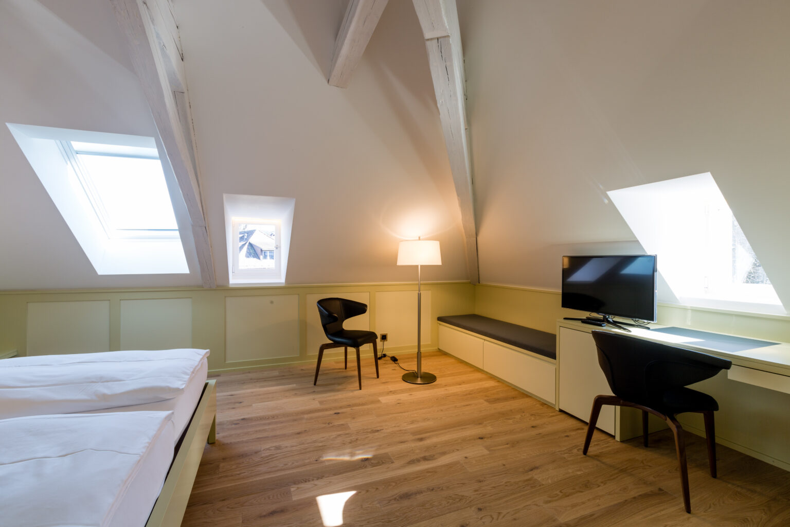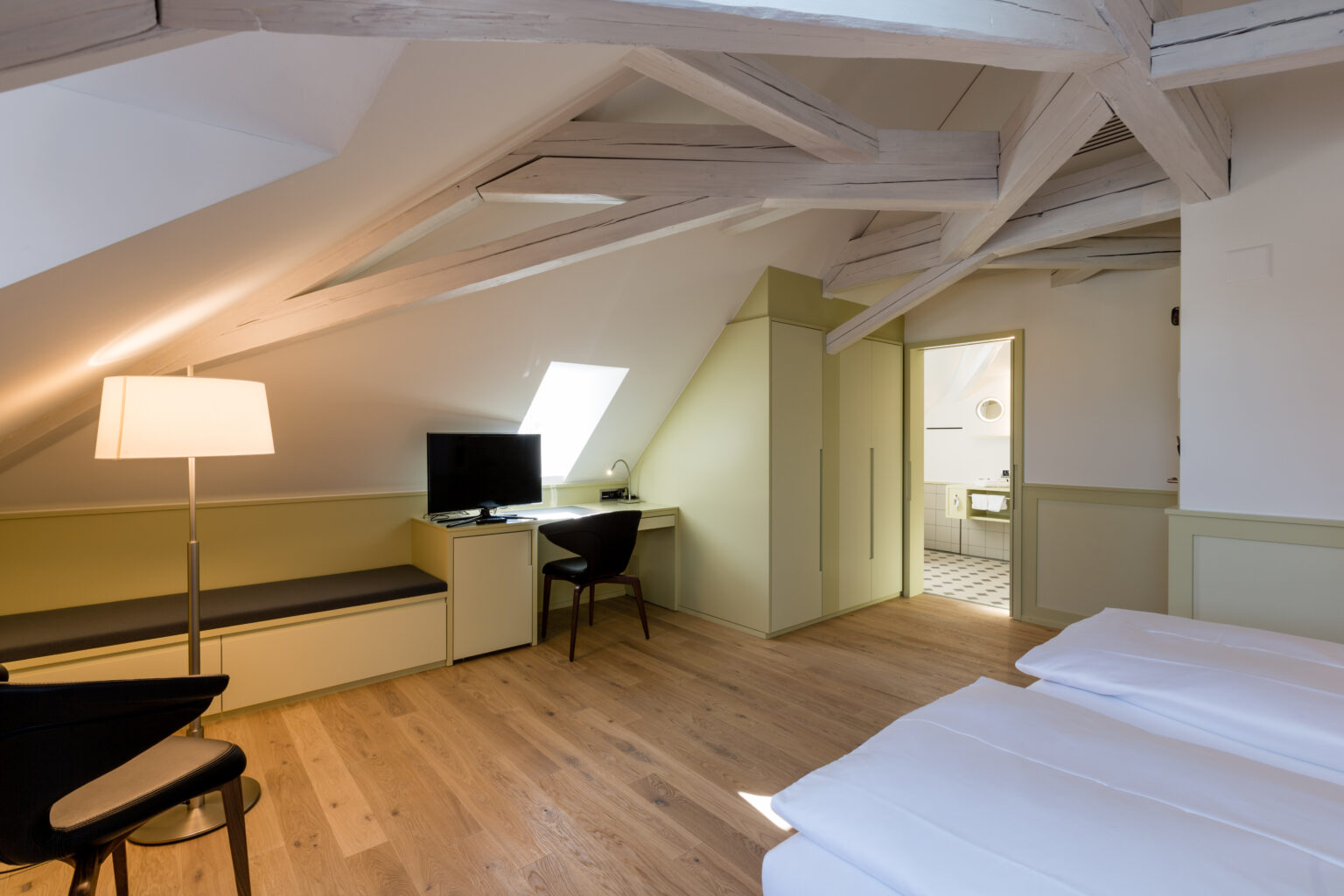 Grosszügig, originell, mit noch mehr Komfort und ausgebaut in Dachschrägen: Das bedeutet «Deluxe» in der Sprache der «Krone». Beste Qualität von der Bettwäsche bis zu den Frotteetüchern, die inspirierende Kunst an den Wänden und unzählige Details, die zur Wohlfühlatmosphäre beitragen.